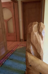 Holz ist ein vielfältiges Wunder. Hier sorgt ein spannendes Stück für einen Abschluss und Halt beim Treppensteigen. Im Haus Friedwart in Dornach kann man viel entdecken, was man sonst nicht sieht.