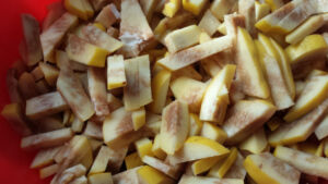 Bei harten Quitten verstehe ich die Erfindung von Küchenbeilen. Bei mir muss es sicherheitshalber das gute alte Omamesser sein.