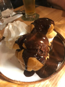 Nach der Arbeit das Vergnügen – das hat sich auch Anna gedacht, die nach einem erlebnisreichen Tag in der Kathedrale von Chartres die einheimischen Eclair (netterweise vor Verzehr) fotografiert hat. Danke für das Bild!