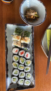 Ernährung – es ist ein Privileg, darüber nachdenken zu können. Es gibt aus meiner Sicht nicht DIE Ernährung, die für uns alle passt, sondern ist stets individuell. Ein Highlight für Annemarie war dieses Sushimahl, das sie mit Freude fotografiert und dann verzehrt hat. Danke für dein Bild!