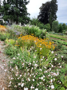 Herbstblühen am Goetheanum mit wunderschönem Salat und Gemüse im Hintergrund. Ein „Bauerngarten“ im Riesenformat.